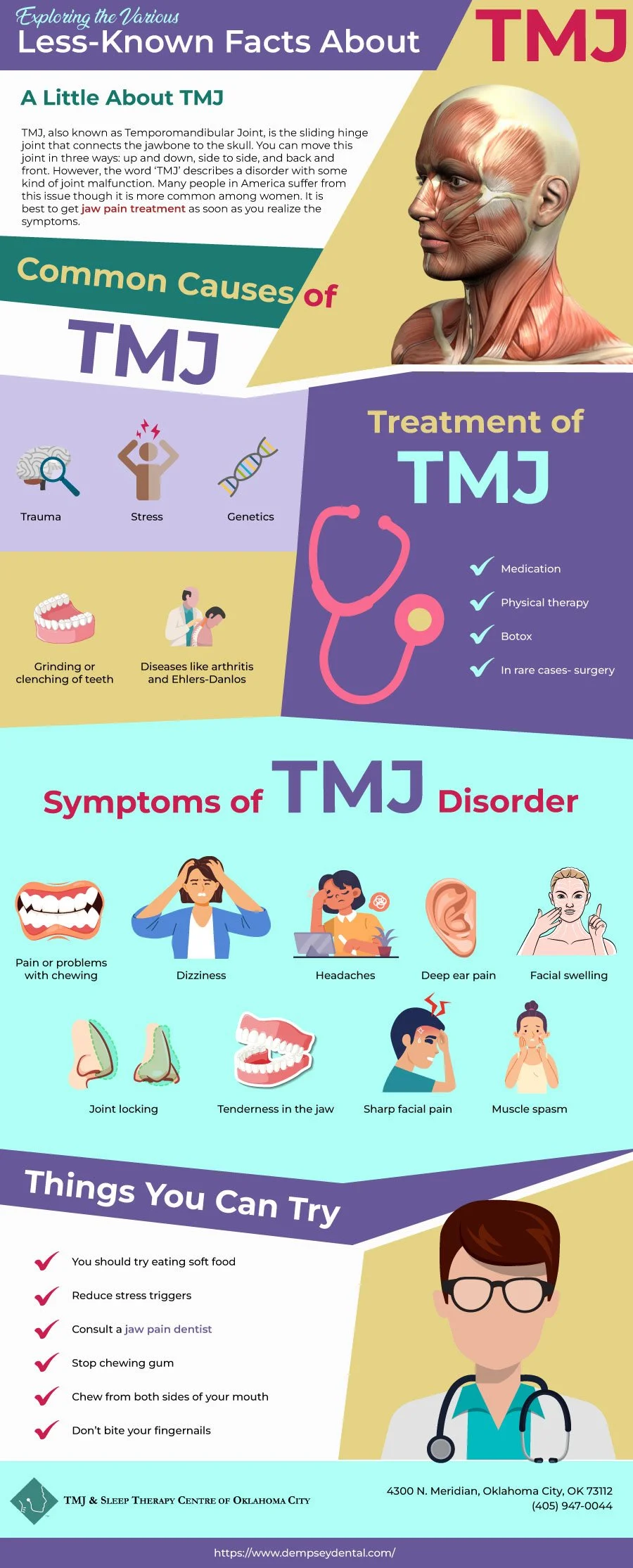 TMJ is the joint that connects our jawbone to the skull and helps us move our joint in three ways: side by side, front and back, and up and down. The malfunction of this joint becomes a matter of concern for many women. Some symptoms include dizziness, ear pain, sharp facial pain, joint locking, difficulty chewing, headache, aching pain in your ear and muscle spasm. Some ways to treat TMJ are medication, Botox, physical therapy, and surgery. It has happened for many reasons like trauma, grinding, genetics, stress, and diseases like arthritis and Ehlers-Danlos. You should consult a joint pain dentist and try to eat soft foods during this time. You should also eat from both sides of your mouth and stop biting your fingernails.